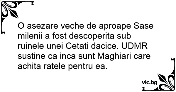 O asezare veche de aproape Sase milenii a fost descoperita sub ruinele unei Cetati dacice. UDMR sustine ca inca sunt Maghiari care achita ratele pentru ea.