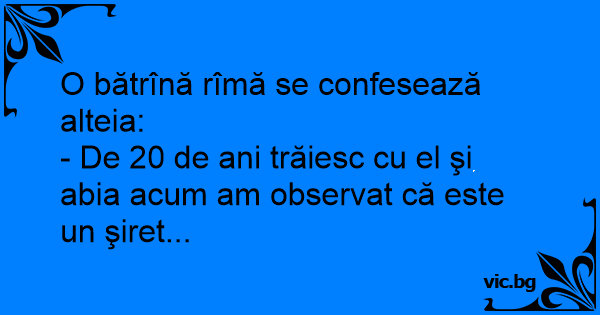 O bătrînă rîmă se confesează alteia: