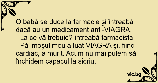 O babă se duce la farmacie şi întreabă dacă au un medicament anti-VIАGRА.