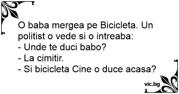 O baba mergea pe Bicicleta. Un politist o vede si o intreaba:
