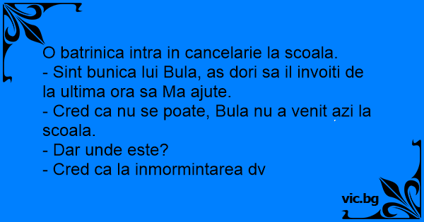 - Cred ca nu se poate, Bula nu a venit azi la scoala.