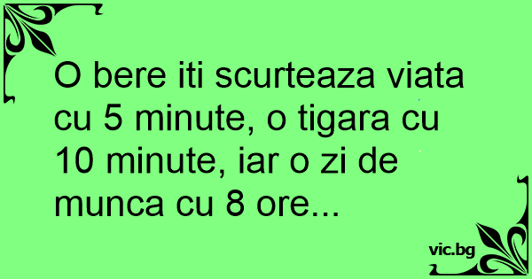 O bere iti scurteaza viata cu 5 minute, o tigara cu 10 minute, iar o zi de munca cu 8 ore...