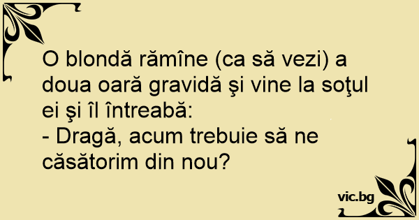 O blondă rămîne (ca să vezi) a doua oară gravidă şi vine la soţul ei şi îl întreabă: