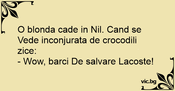 O blonda cade in Nil. Cand se Vede inconjurata de crocodili zice: