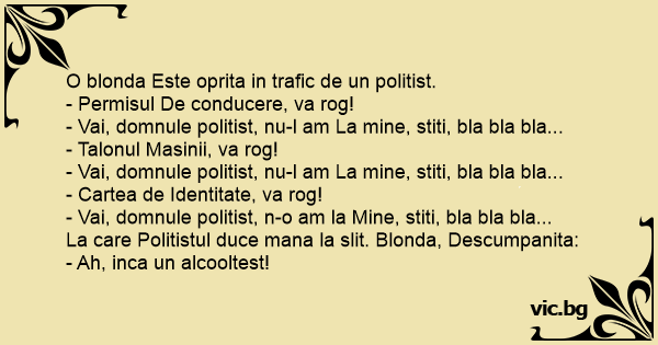 - Vai, domnule politist, n-o am la Mine, stiti, bla bla bla...