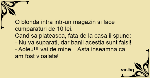 O blonda intra intr-un magazin si face cumparaturi de 10 lei.