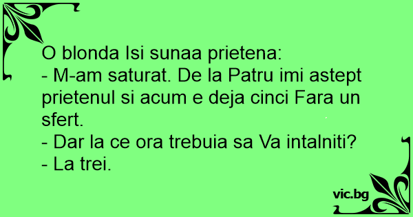- M-am saturat. De la Patru imi astept prietenul si acum e deja cinci Fara un sfert.
