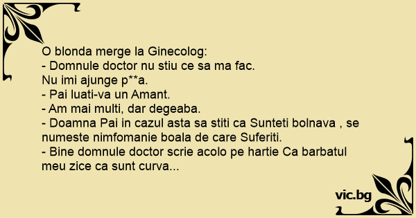 - Bine domnule doctor scrie acolo pe hartie Ca barbatul meu zice ca sunt curva...