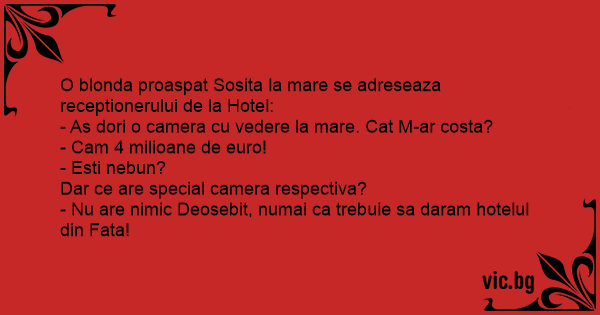 O blonda proaspat Sosita la mare se adreseaza receptionerului de la Hotel: