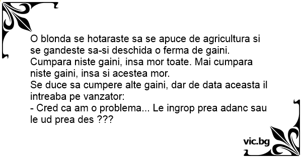 Cumpara niste gaini, insa mor toate. Mai cumpara niste gaini, insa si acestea mor.