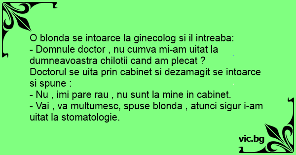 - Vai , va multumesc, spuse blonda , atunci sigur i-am uitat la stomatologie.