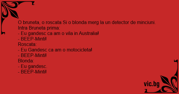 O bruneta, o roscata Si o blonda merg la un detector de minciuni. Intra Bruneta prima: