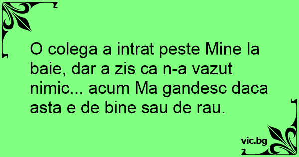 O colega a intrat peste Mine la baie, dar a zis ca n-a vazut nimic... acum Ma gandesc daca asta e de bine sau de rau.