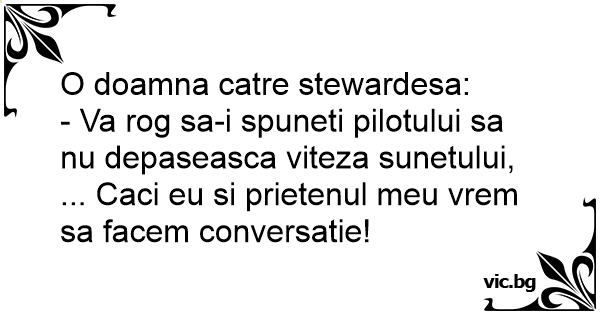 - Va rog sa-i spuneti pilotului sa nu depaseasca viteza sunetului, ... Caci eu si prietenul meu vrem sa facem conversatie!