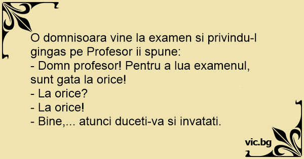- Domn profesor! Pentru a lua examenul, sunt gata la orice!