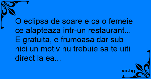 O eclipsa de soare e ca o femeie ce alapteaza intr-un restaurant... E gratuita, e frumoasa dar sub nici un motiv nu trebuie sa te uiti direct la ea...
