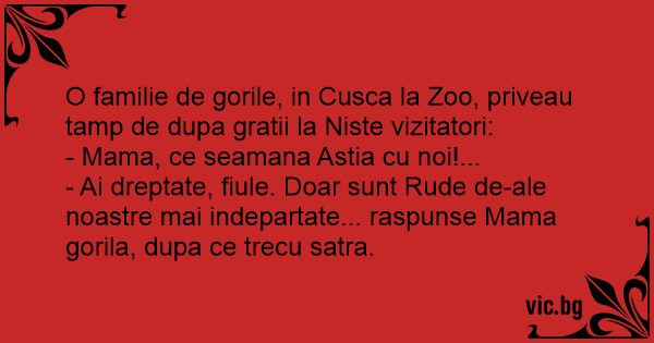 - Ai dreptate, fiule. Doar sunt Rude de-ale noastre mai indepartate... raspunse Mama gorila, dupa ce trecu satra.