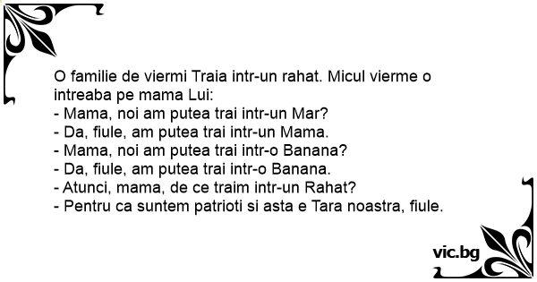 O familie de viermi Traia intr-un rahat. Micul vierme o intreaba pe mama Lui: