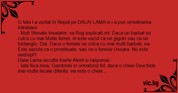 O fata l-a vizitat In Nepal pe DALAI LAMA si i-a pus urmatoarea Intrebare: