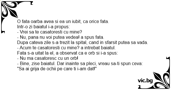 Fata s-a uitat la el, a observat ca e orb si i-a spus: