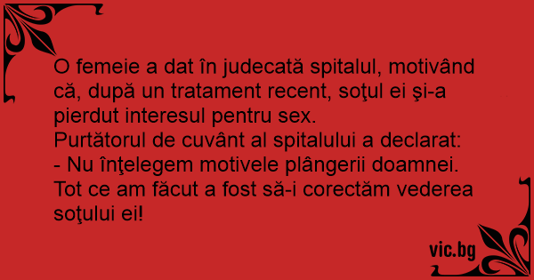 O femeie a dat în judecată spitalul, motivând că, după un tratament recent, soţul ei şi-a pierdut interesul pentru sеx.