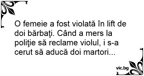 O femeie a fost violată în lift de doi bărbaţi. Când a mers la poliţie să reclame violul, i s-a cerut să aducă doi martori...