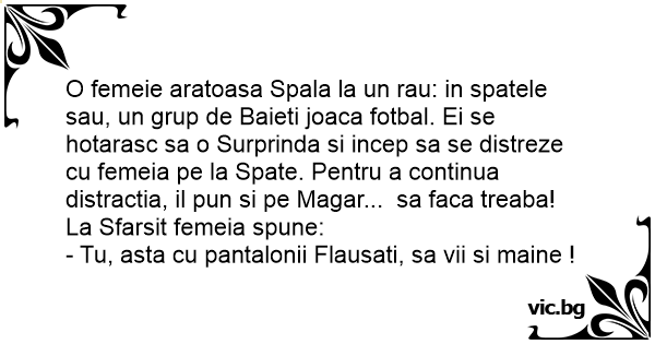 - Tu, asta cu pantalonii Flausati, sa vii si maine !