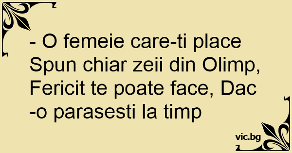 - O femeie care-ti place Spun chiar zeii din Olimp, Fericit te poate face, Dac-o parasesti la timp