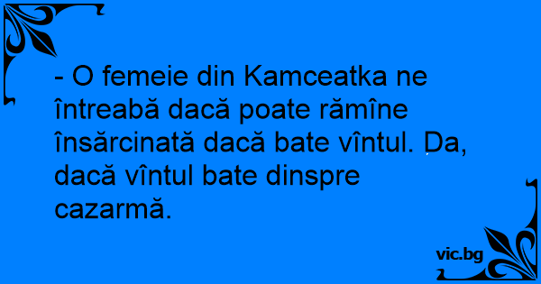 - O femeie din Kamceatka ne întreabă dacă poate rămîne însărcinată dacă bate vîntul. Da, dacă vîntul bate dinspre cazarmă.