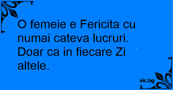 O femeie e Fericita cu numai cateva lucruri. Doar ca in fiecare Zi altele.