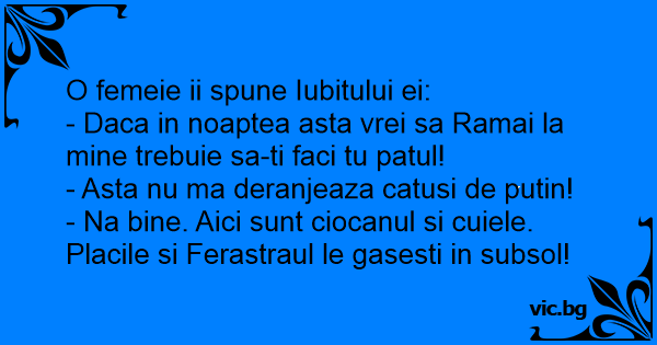 - Daca in noaptea asta vrei sa Ramai la mine trebuie sa-ti faci tu patul!