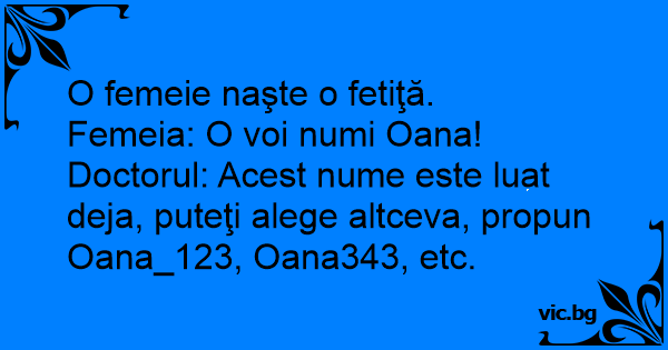 Doctorul: Acest nume este luat deja, puteţi alege altceva, propun Oana_123, Oana343, etc.