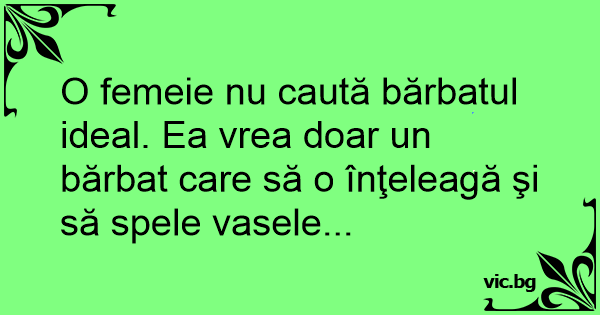 O femeie nu caută bărbatul ideal. Ea vrea doar un bărbat care să o înţeleagă şi să spele vasele...