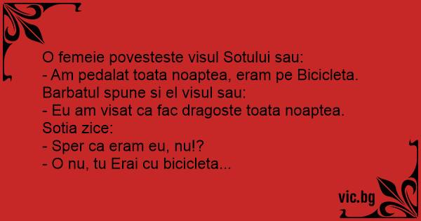 - Am pedalat toata noaptea, eram pe Bicicleta.