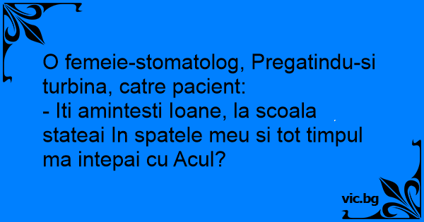 - Iti amintesti Ioane, la scoala stateai In spatele meu si tot timpul ma intepai cu Acul?