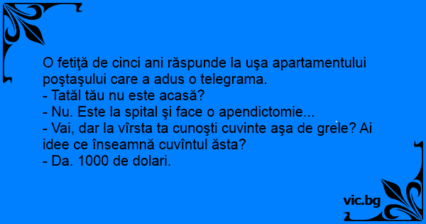 - Vai, dar la vîrsta ta cunoşti cuvinte aşa de grele? Ai idee ce înseamnă cuvîntul ăsta?