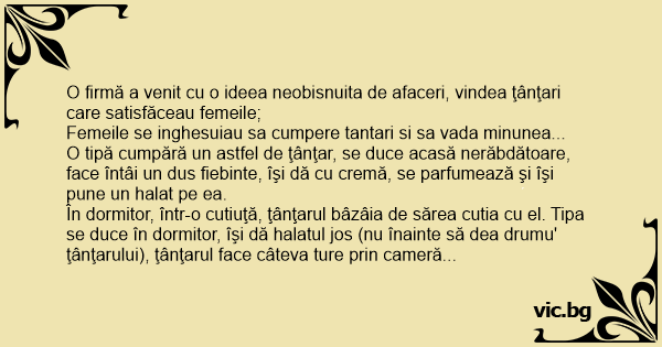 O tipă cumpără un astfel de ţânţar, se duce acasă nerăbdătoare, face întâi un dus fiebinte, îşi dă cu cremă, se parfumează şi îşi pune un halat pe ea.