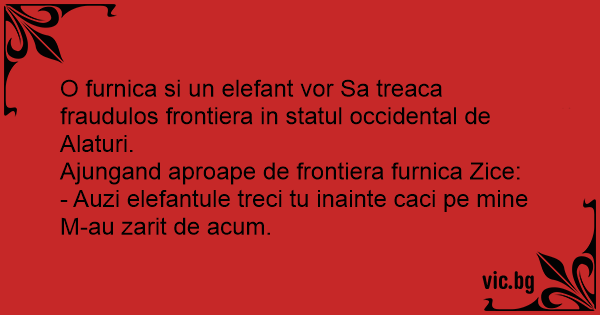 O furnica si un elefant vor Sa treaca fraudulos frontiera in statul occidental de Alaturi.