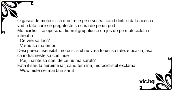 - Pai, inainte sa sari, de ce nu ma saruti?