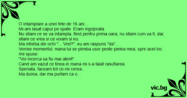 Nu stiam ce se va intampla, fiind pentru prima oara, nu stiam сuм va fi, dar, stiam ce vrea si ce voiam si eu.