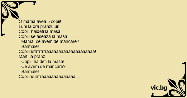 Copiii:iar sarmale,ne-am saturat de sarmale,toata ziua numai sarmale!