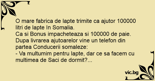 - Va multumim pentru lapte, dar ce sa facem cu multimea de Saci de dormit?...