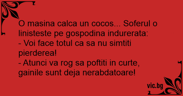 O masina calca un cocos... Soferul o linisteste pe gospodina indurerata: