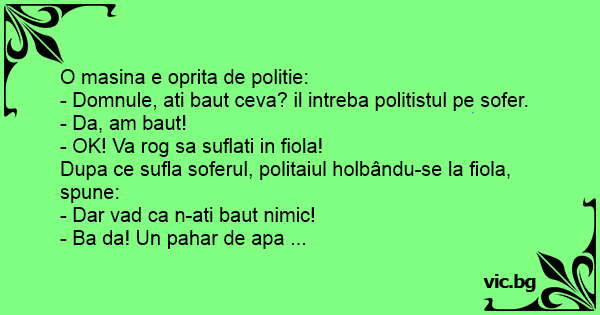 Dupa ce sufla soferul, politaiul holbându-se la fiola, spune: