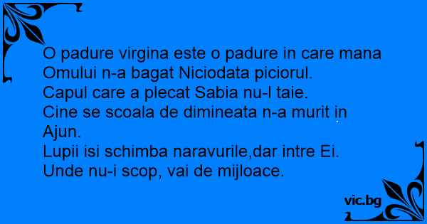 O padure virgina este o padure in care mana Omului n-a bagat Niciodata piciorul.