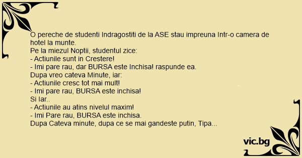 - Imi pare rau, dar BURSA este Inchisa! raspunde ea.