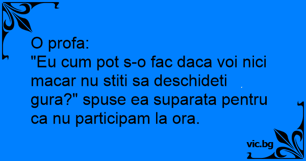 "Eu сuм рот s-o fac daca voi nici macar nu stiti sa deschideti gura?" spuse ea suparata pentru ca nu participam la ora.