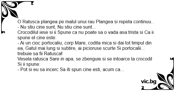 O Ratusca plangea pe malul unui rau Plangea si repeta continuu..