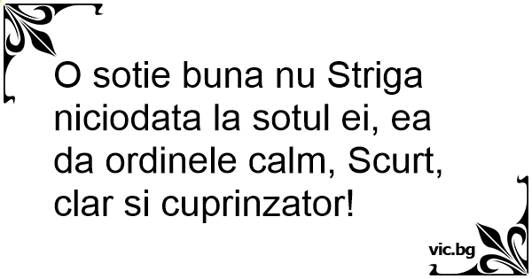 O sotie buna nu Striga niciodata la sotul ei, ea da ordinele calm, Scurt, clar si cuprinzator!