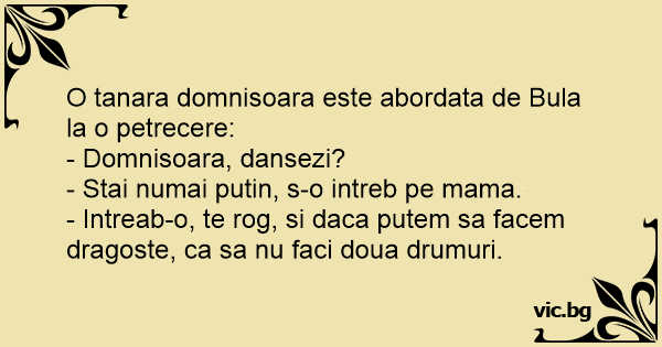 O tanara domnisoara este abordata de Bula la o petrecere:
